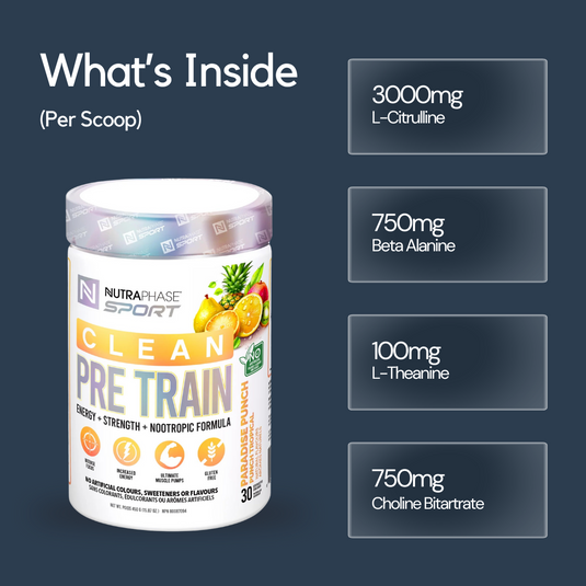 Experience razor-sharp focus with our balanced blend of nootropics, designed to keep your mind clear and engaged for every set. NutraPhase Clean Pre-Train fuels you with everything you need for an optimal training session, helping you stay energized, strong, and motivated without any unnecessary additives.