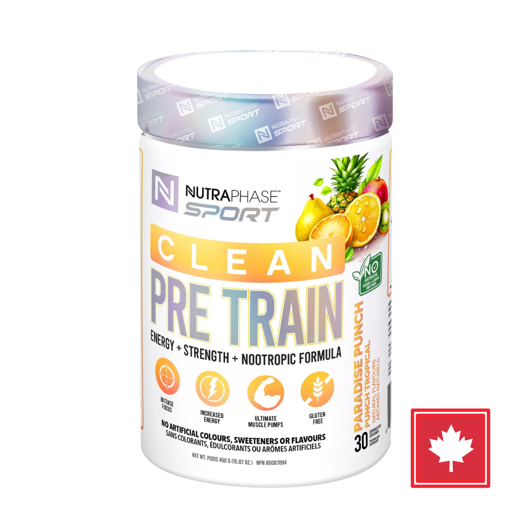 NutraPhase Clean Pre-Train is your go-to formula for natural energy, strength, and focus, free from artificial colors, flavors, or sweeteners. With 30 servings per container, Clean Pre-Train is crafted to help you power through every workout with enhanced energy and improved muscle pump, while being completely gluten-free.