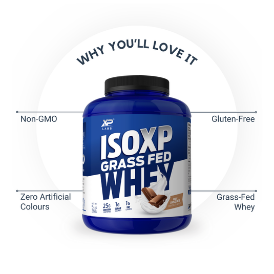 ISO XP Whey Protein Isolate is crafted with the finest all-natural ingredients to deliver 25 grams of pure, grass-fed New Zealand WPI94 per serving. Free from fillers, hormones, and any unwanted additives, this protein powder is GMO-free and 100% rBGH-free (Recombinant Bovine Growth Hormone), ensuring you get only the cleanest fuel for your body.